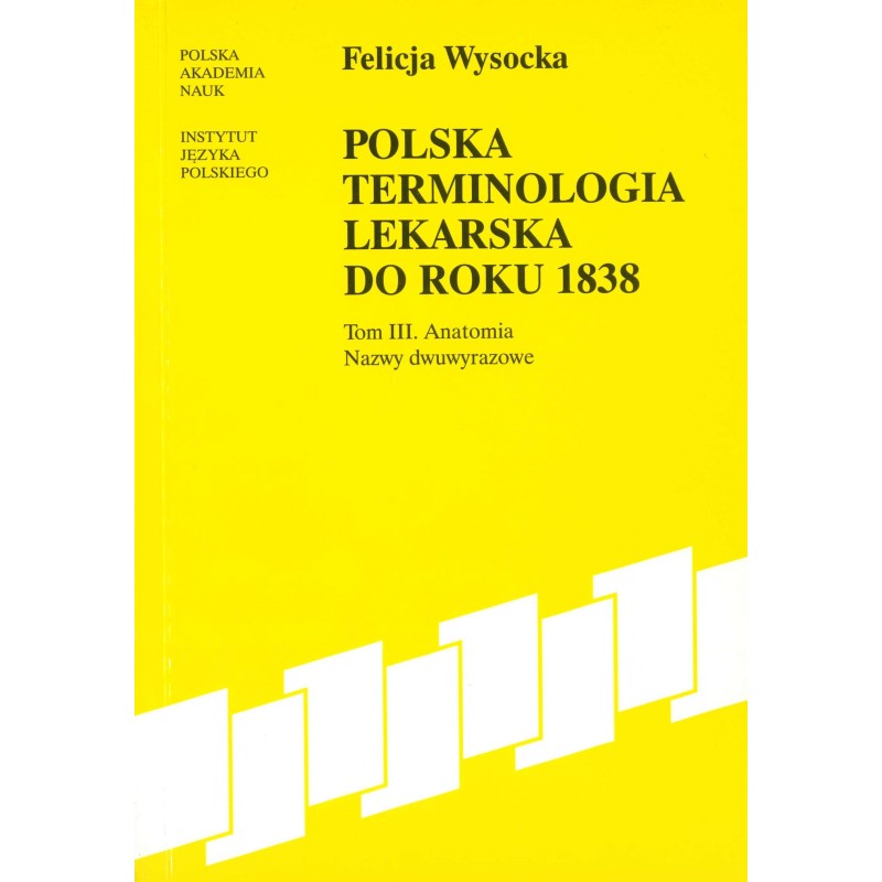 Felicja Wysocka, Polska terminologia lekarska do roku 1838. Tom III. Anatomia. Nazwy dwuwyrazowe, Kraków 2007, 147 s.
